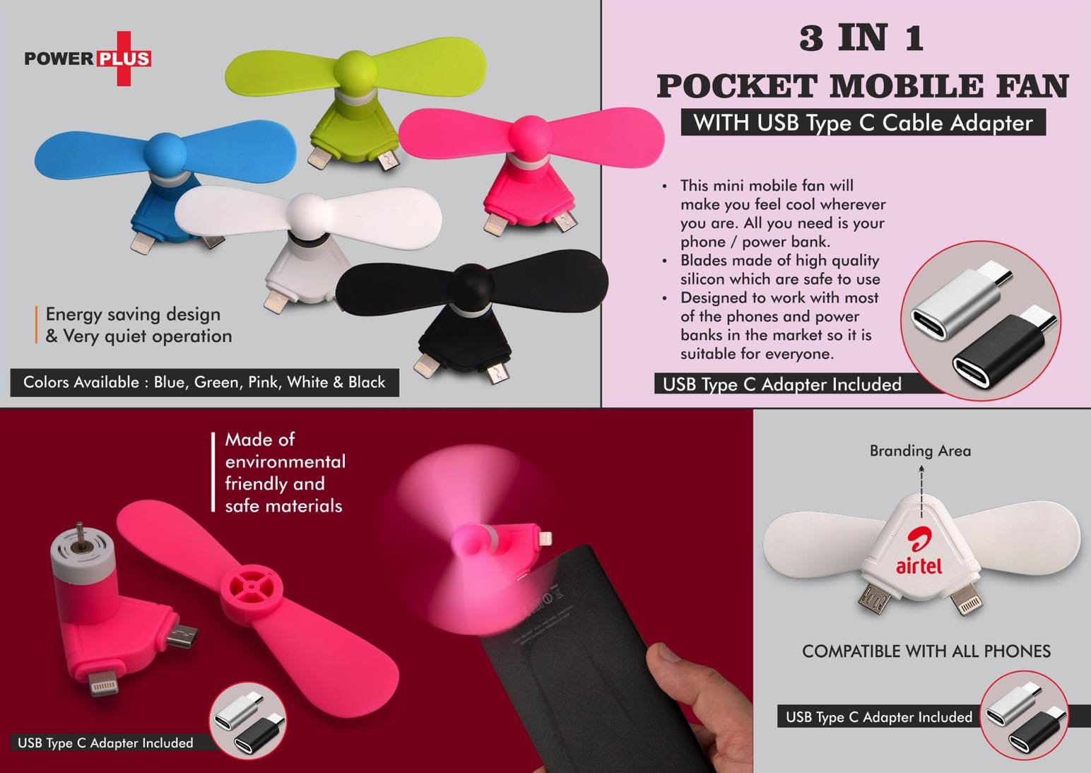 – Just plug into your phone to enjoy cool breeze