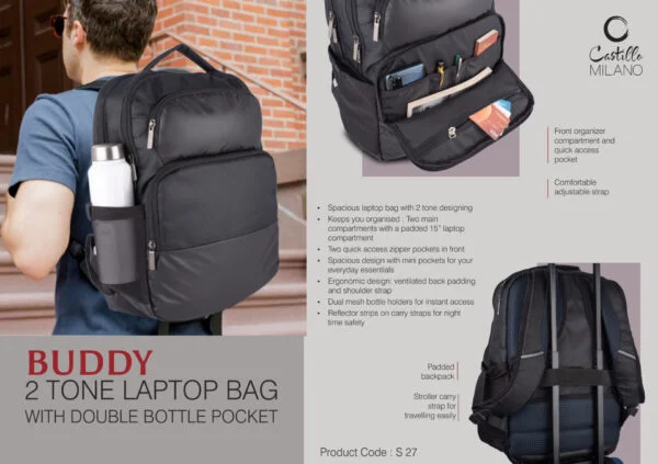 2 Tone Laptop Bag with Double Bottle Pocket