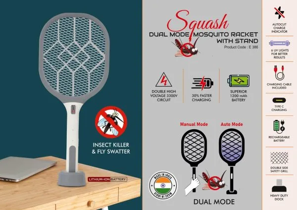 – Dual Mode Mosquito Racket with Stand