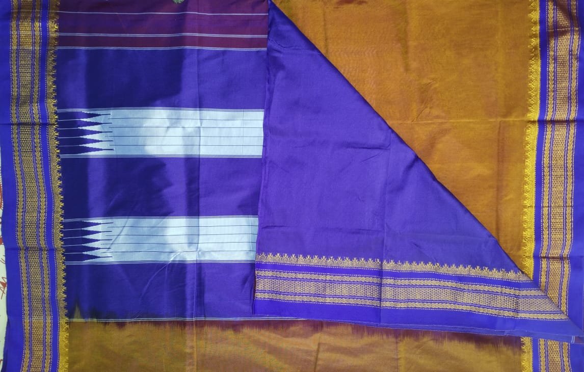 Designed by skilled artisans, each saree reflects the cultural essence of Ilkal weaving — known for its checkerboard patterns, contrast borders, and classic temple-inspired motifs.