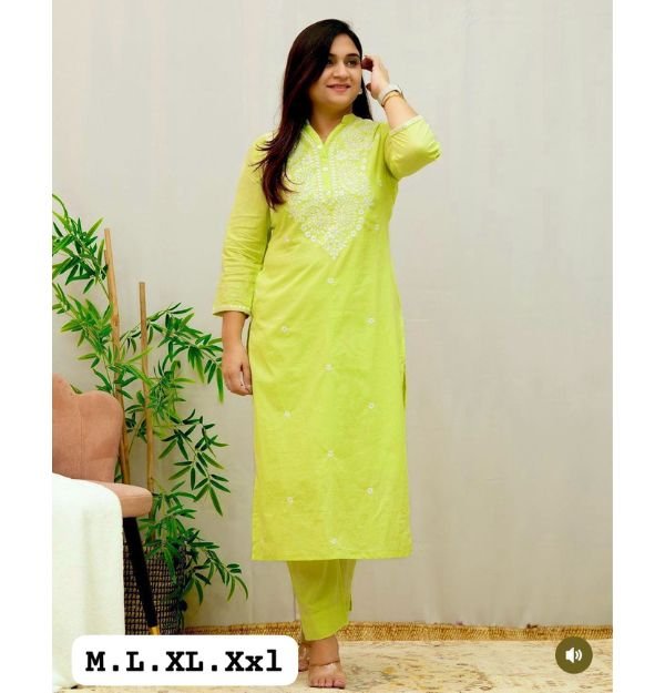 Premium Cotton Kurti Set with Heavy Embroidery ????