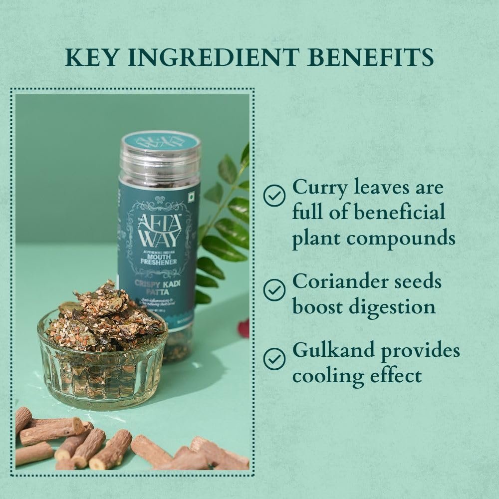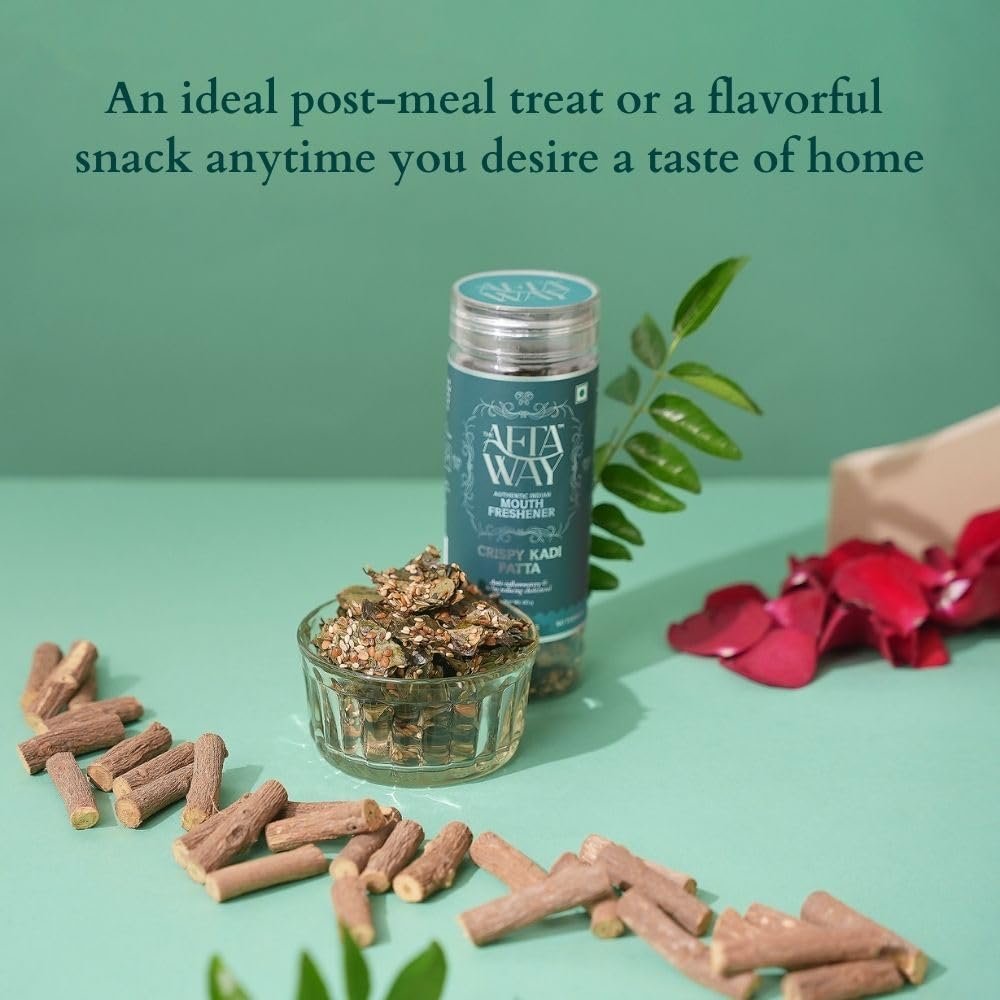 ANCIENT GOODNESS: Add a unique and flavourful touch to your daily routine with Crispy Kadi Patta, a tasty blend that brings out the goodness of the aromatic curry leaves. More than just a mouth freshener, it celebrates the ancient wisdom of traditions passed down through generations.