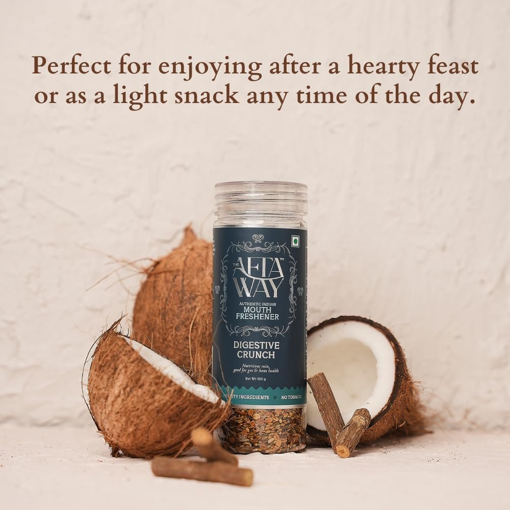 SPOONFUL OF FLAVOURS: Infused with the rich flavour of dry coconut and the soothing properties of jethimadh powder, our Digestive Crunch may help in digestion while providing a hint of sweetness. The addition of hari patti enhances its refreshing profile, making it the perfect companion for any meal.