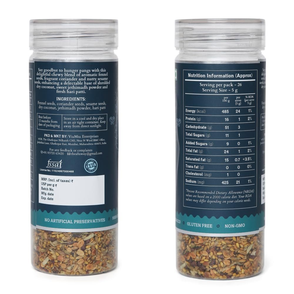 ABOUT THE BRAND: The AftaWay brings the vibrant flavours of India’s traditional mukhwas to the world with premium, supari-free, and preservative-free blends. From sugar-free seed mixes to refreshing paan-based mukhwas, our carefully curated range ensures an authentic taste of India in every bite.