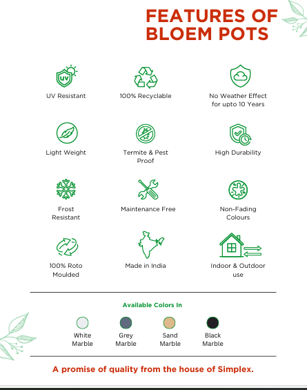 Perfect for succulents, herbs, small trees, decorative plants, and balcony gardens, the Zenstone Garden Pots deliver long-lasting performance while enhancing the calming and stylish look of any environment. Weather-resistant, UV-safe, and eco-friendly, these garden pots are built to elevate your home or garden with timeless appeal.